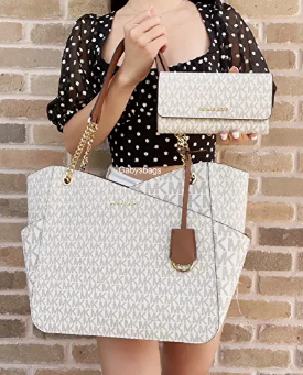 Michael Michael kors jet set travel large bag over your shoulder with chain and wallet Michael kors jet set travel trifold wallet