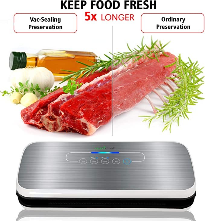 LAB TESTED QUALITY: Vacuum sealers preserve food up to 5 times longer than zipper baggies or containers, basically depending on the type of food The NutriChef Vacuum Sealer however, was subjected to specific laboratory testing to effectively increase food shelf life