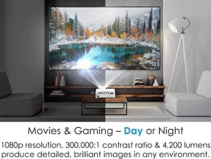 HOME CINEMA PICTURE QUALITY: 1080p (1920×1080) resolution (with 4K input) and 300,000:1 contrast ratio renders sharp and detailed images from high definition content without downscaling or compression