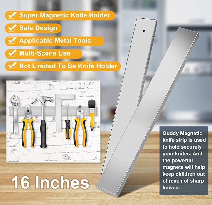 Multipurpose Magnetic Knife Block - This knife magnetic strip has an extended length that allows you to hold more knives than most knife blocks on the market while still being small enough to fit in well into many nooks and crannies in yourmount onto kitchen walls with ease; all hardware included for easy installation. Ouddy magnetic knife rack can be used as knife holder, knife strip, knife rack, kitchen utensil holder, home organizer, art supply organizer & magnetic tool holder.