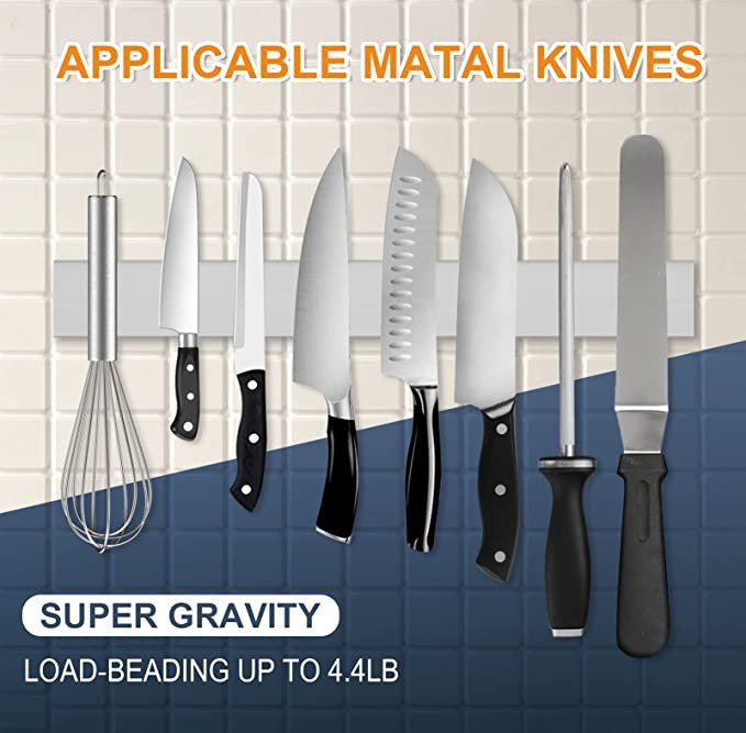 Knife Magnetic Strip Material - Our magnetic knife holder for wall is made of stainless steel and featuring a powerful magnet. Sleek, modern, space-saving design saves valuable countertop and workbench space, accenting any kitchen decor.