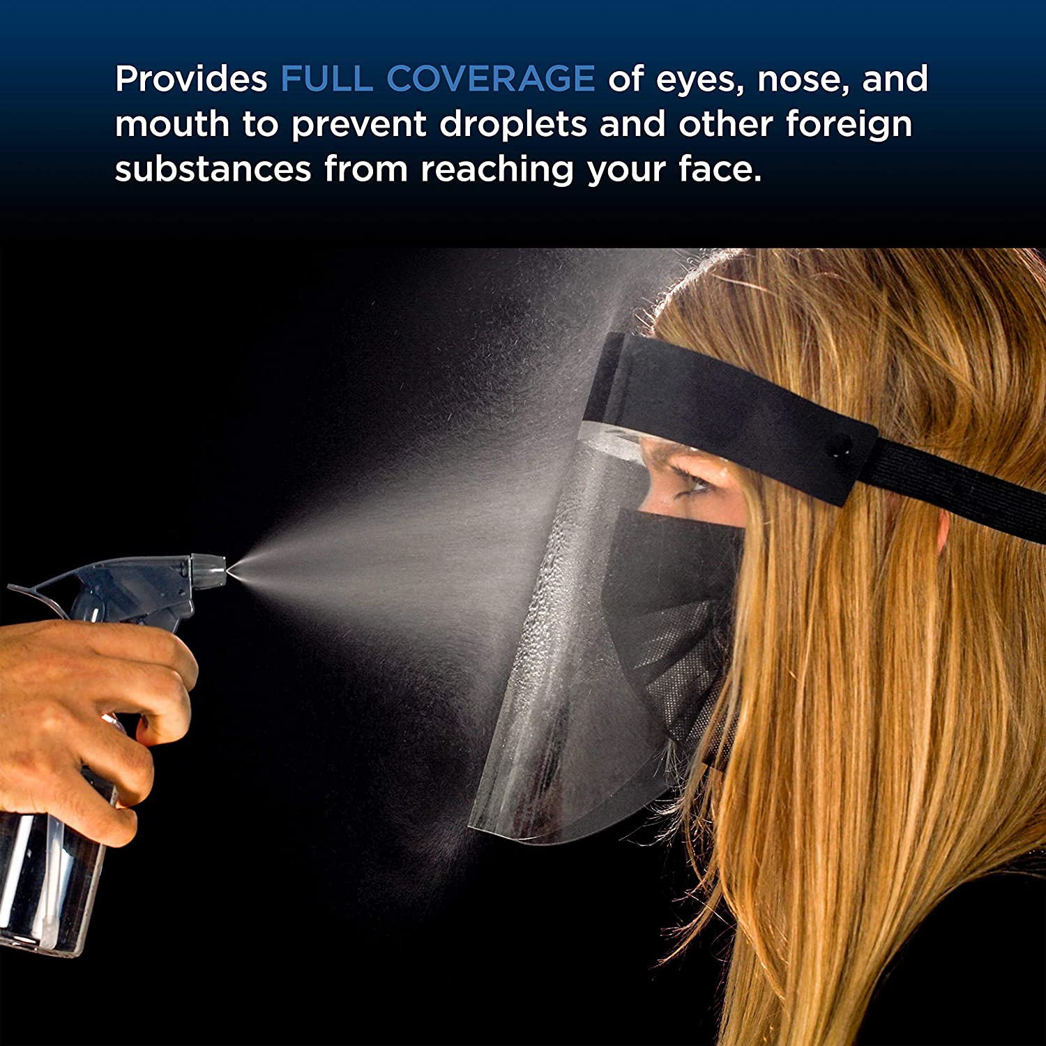 Full face protection: a safe full-size mask with a flexible odor structure that protects the forehead, sides and front of the face. This panel provides 180-degree protection and full coverage of eyes, nose and mouth, preventing saliva, cough, sneezing and other foreign matter from entering the face. Dimensions: 8.75 inches high and 12.65 inches wide.