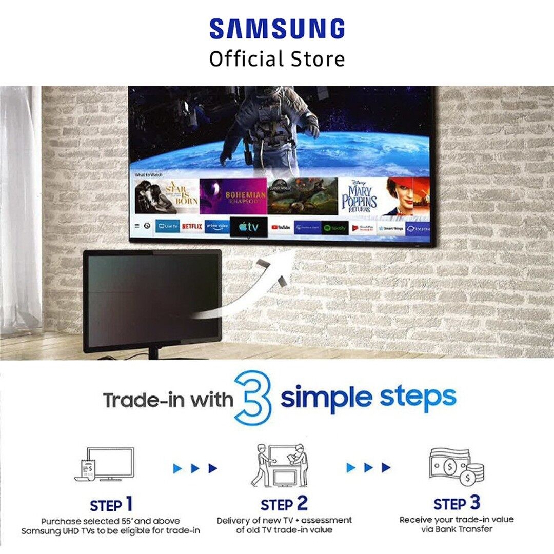 - Trade-In value according to TV screen size: 32"-39" ~ RM150, 40"-50" ~ RM300, 55"- 65" ~ RM600, 70" & Above ~ RM1000.