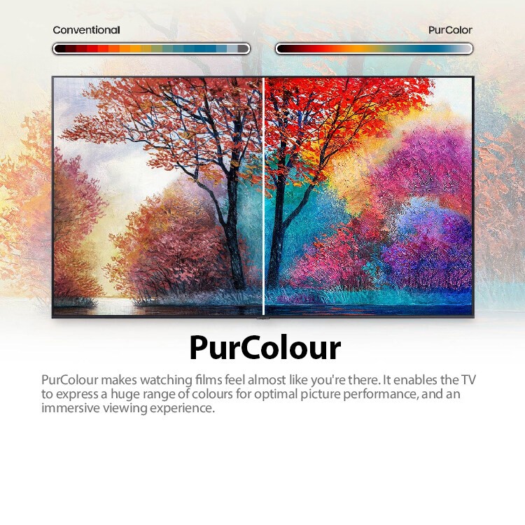 - PurColour makes watching films feel almost like you're there. It enables the TV to express a huge range of colours for optimal picture performance, and an immersive viewing experience.