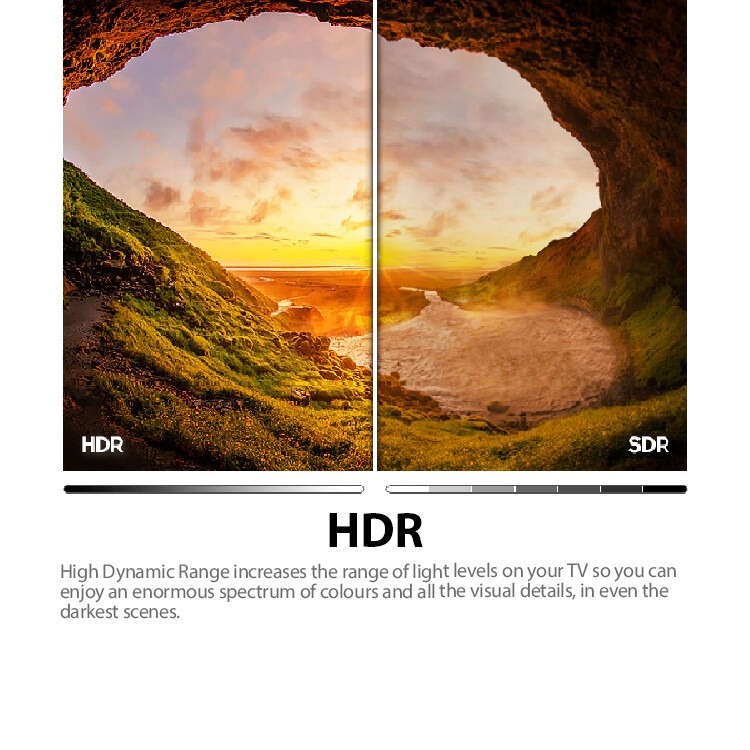 - High Dynamic Range increases the range of light levels on your TV so you can enjoy an enormous spectrum of colours and all the visual details, in even the darkest scenes.