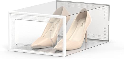 Say goodbye to mess: Stackable shoe storage boxes, dust-free, maximize storage space. Features a snap-on closure to create a shoe tower that will take your shoe rack to the next level. Find the right shoe with a glance through the see-through front door.