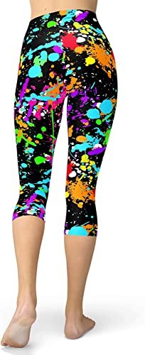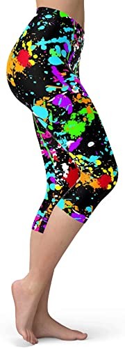 High quality single-sided 3D printing: 80s leggings, colorful mesh design repeating patterns, messy art ink spots, brush drawings, bright graffiti; Does not fade