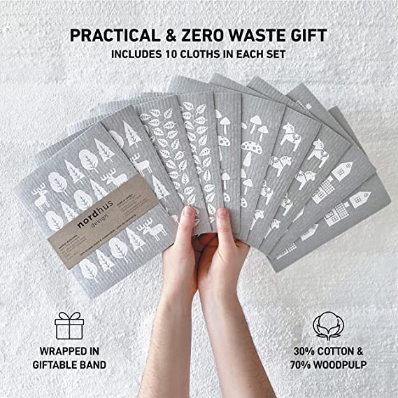 Swedish Dishcloths for Kitchen 10 pack - Made in Sweden - Reusable and Replace Paper Towels, Sponges and Dish Rags - Eco Friendly, Biodegradable, Absorbent and Quick Drying Cellulose Cloths