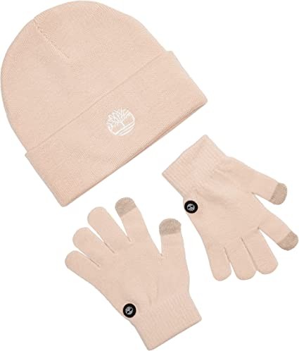 This Timberland 3-piece cold weather accessory gift set features a double scarf, flanged beanie and touchscreen gloves.