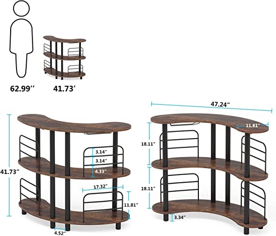 Large Open Storage Space: This 3-tier liquor bar unit with curved design and 2 large shelves offer ample space to store items, 4 front guard rails keep items from accidental spill. It’s suitable for displaying wine and wine accessories, meeting your storage needs