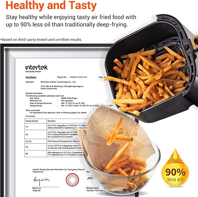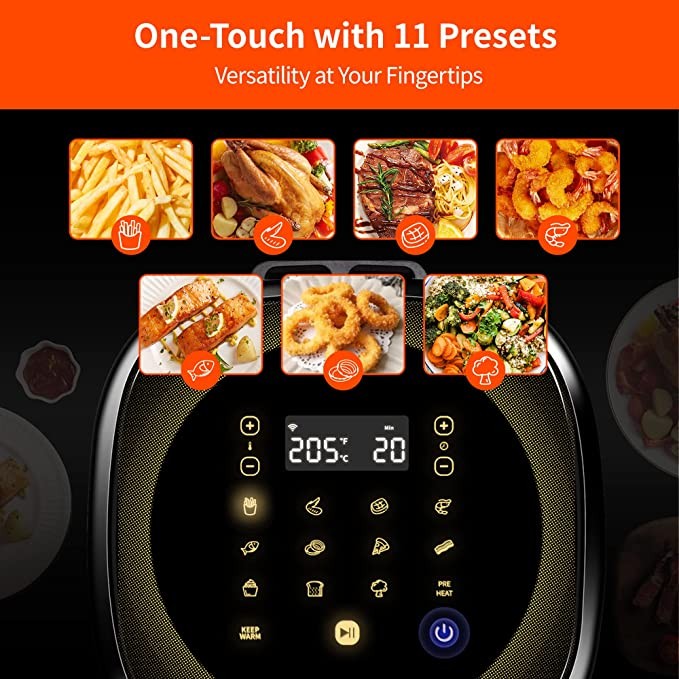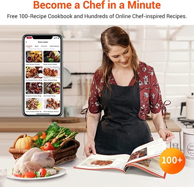 ?? ??????? ??? ???? ??? ???????: Load with 11 one-touch presets, it can easily and intelligently cook french fries, chicken, steak, bacon etc. - Just choose a food type and press the button! Be inspired with the free 100-Recipe cookbook and explore, save, customize more common and pro online recipes in Ultenic App.