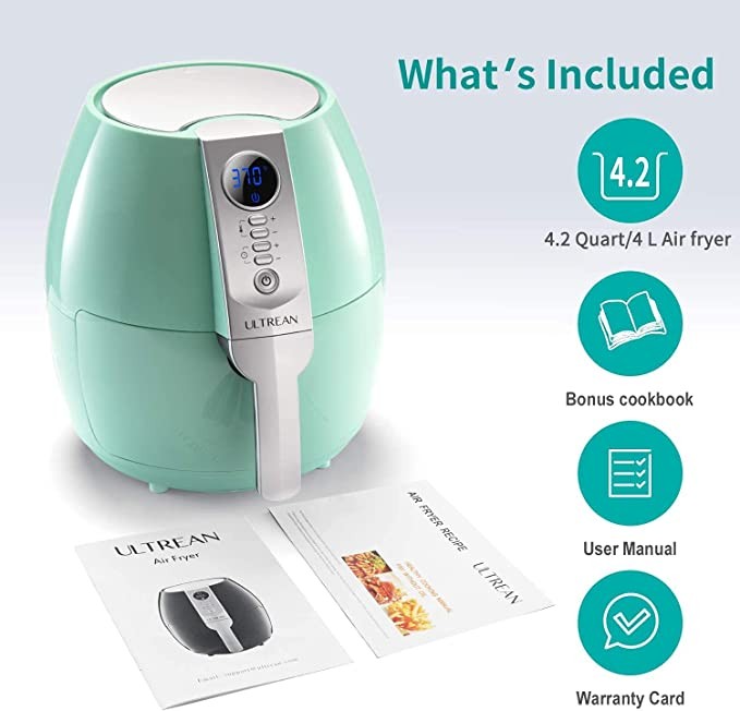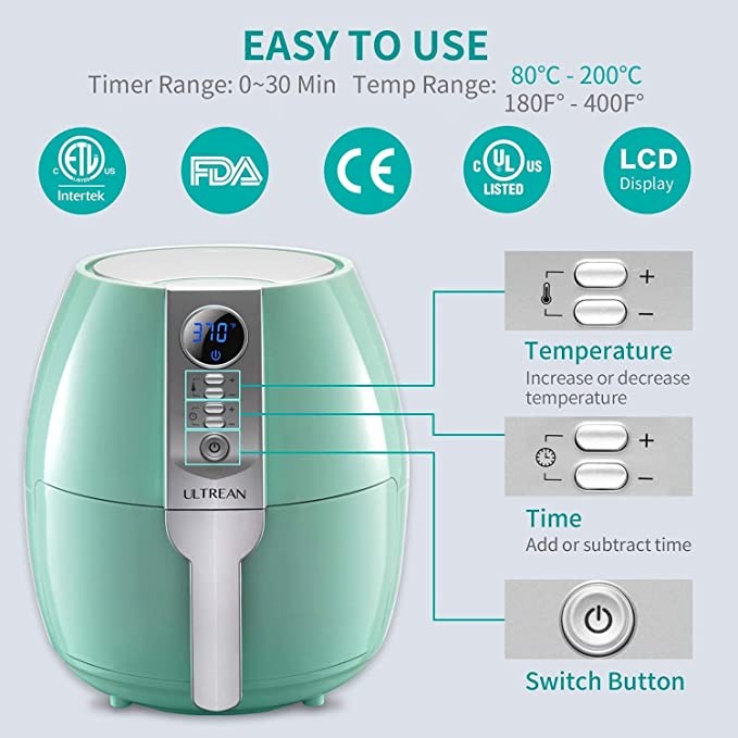 Enjoy Food with Less Fat or Oil: With Ultrean air fryer you can enjoy the same fried and crispy foods with less fat and grease