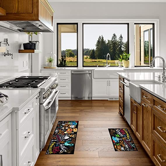 MULTIPLE SIZES & DESIGNS! The possibilities are endless with our 2 piece kitchen rugs. Bring your kitchen to life with a pop of color and design! Ranging from cute home goods, bright patterns, and funky designs. Your guests will be drawn in by the liveliness of your kitchen! The set comes with two pieces to create a cohesive environment! The non slip kitchen mat is both comfortable! Small cushion for comfort! Essential floor-mat for your home!