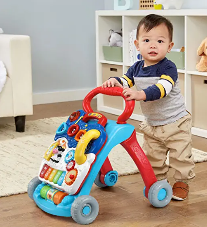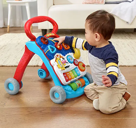 The interactive training walker has a removable game panel. Free packaging comes in a variety of simple brown boxes.