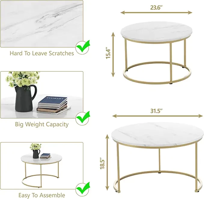 Free combination: includes a large coffee table (31.6 "d x 31.6" w x 18 "b) and a small coffee table (23.6" d x w 23.6 "in x 15.2" b). To be more practical, it can be used separately or in the living room to save space.