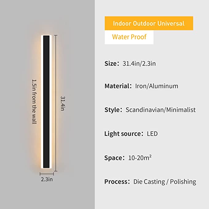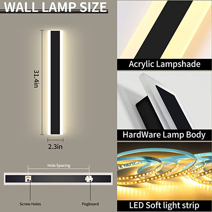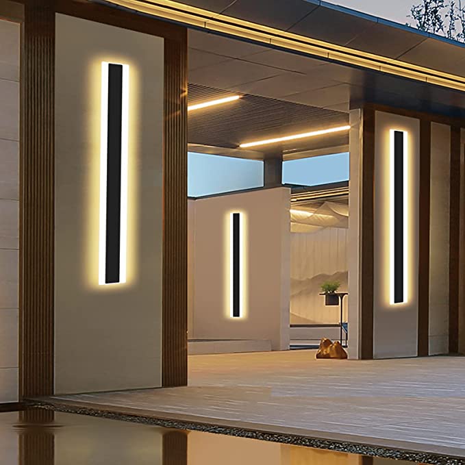 Daoseolo Outdoor Wall Sconces 31.4Inch LED Modern Wall Lamp, Outdoor Black Exterior Wall Lights Frosted Warm White Acrylic, Waterproof Minimalist Decor Porch Wall Lights Fixture for Patio Gar
