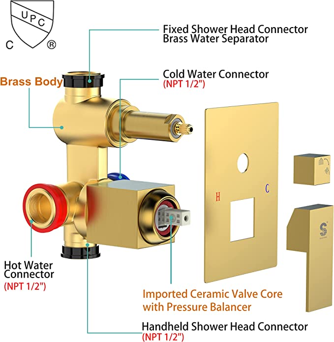 | Included Components | Shower Bracket and Shower Hose, 16 Inch Rain Shower Head, Ceiling Mounted Shower Arm, Brass Handheld Shower Head, Shower Mixer Valve with Trims |