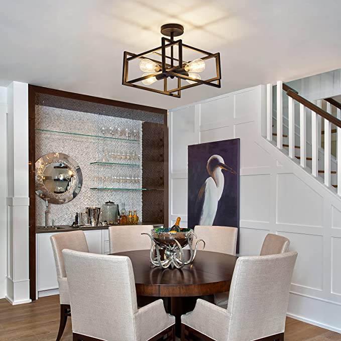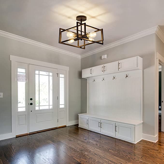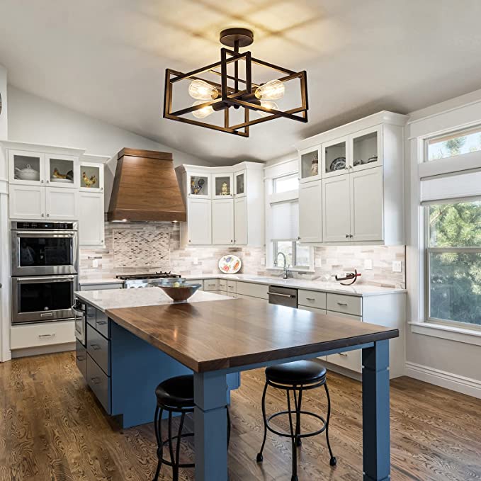 ZGLAOJT 4-Lights Close to Ceiling Light,Black Light Fixture Industrial Flush Mount Ceiling Light ,Farmhouse Chandelier Lighting for Kitchen Island Dining Room Bedroom Foyer Hallway