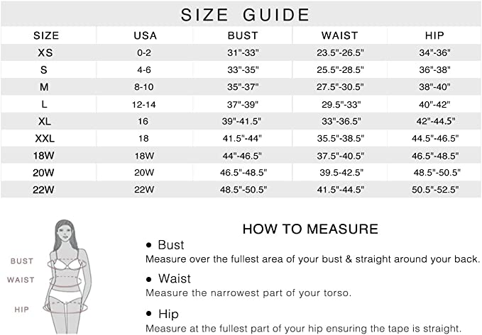 Multiple sizes for you to choose from: XS(US 0-2), S(US 4-6), M(US 8-10), L(US 12-14), XL(US 16), XXL(US 18). Please choose the most suitable size according to the detailed size measurement guide.