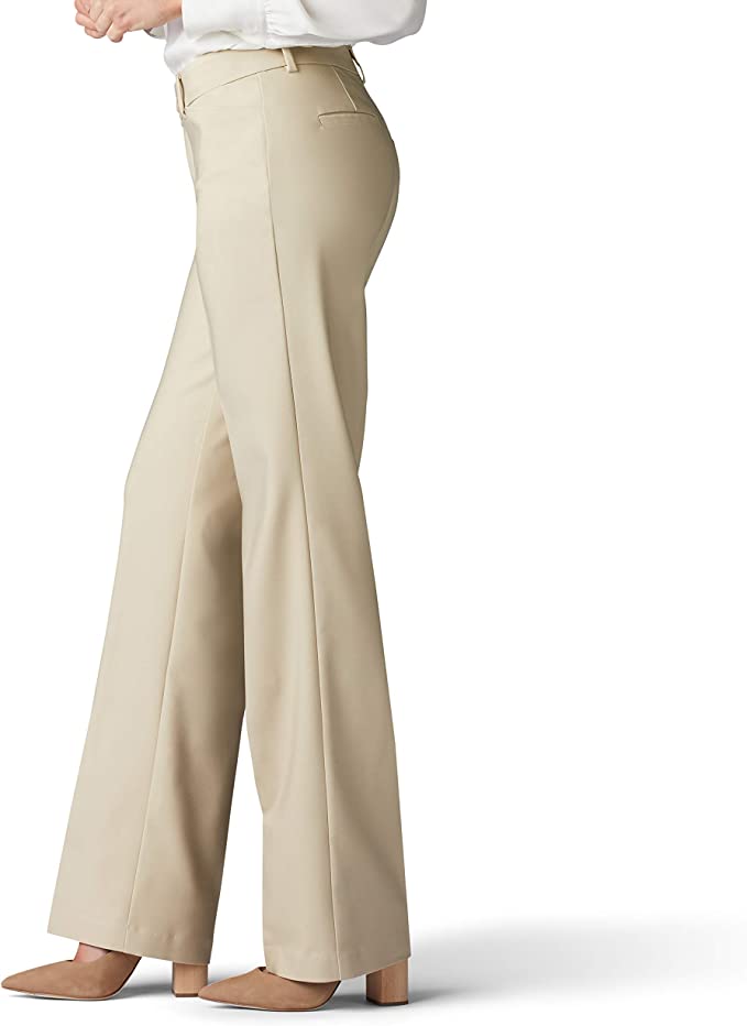 REGULAR FIT. With a regular fit and mid rise, these pants are a work-wear must. These women's trousers have a flexible non-binding waistband for all-day comfort.