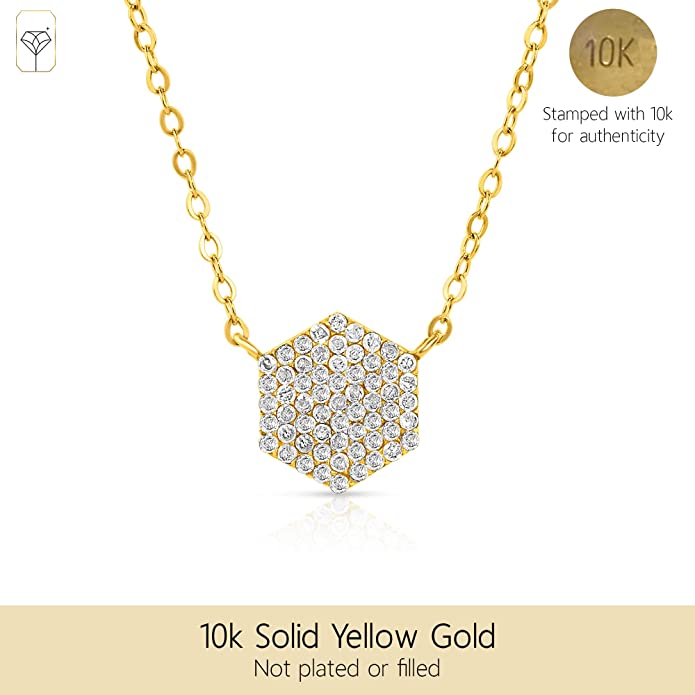 REAL GOLD - All parts of this necklace are made of 10k yellow gold & stamped with “10K”. This necklace is HYPOALLERGENIC and great for women with sensitive skin. This diamond pendant necklace can be worn with anything & is made to last