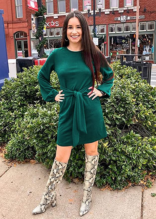 Features: Womens Fall Fashion 2023,Above knee length,Lantern Long Sleeve,Round Neck,Belted,Lightweight,Breathable,Solid Color,Casual Style,Office,Wear to Work