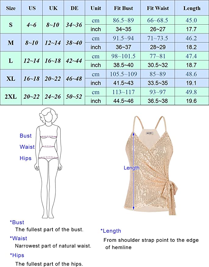 【Dessy Sparkle Tops】Wrap v neck, ruched front, adjustable straps all make this GRACE KARIN sequin tank top suitable for every body type. Tie waist can not only highlight the waistline, but also can show your unique fashion style.
