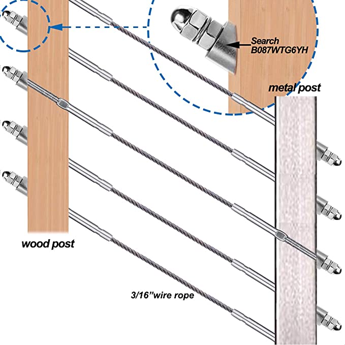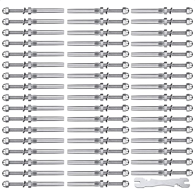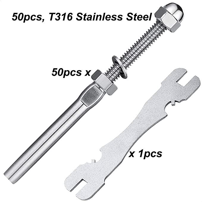 Lulultn 3/16 T316 Stainless Steel Cable Railing Hardware, System Kit, for Wood & Metal Posts, Swage Stud Tensioner 50pcs