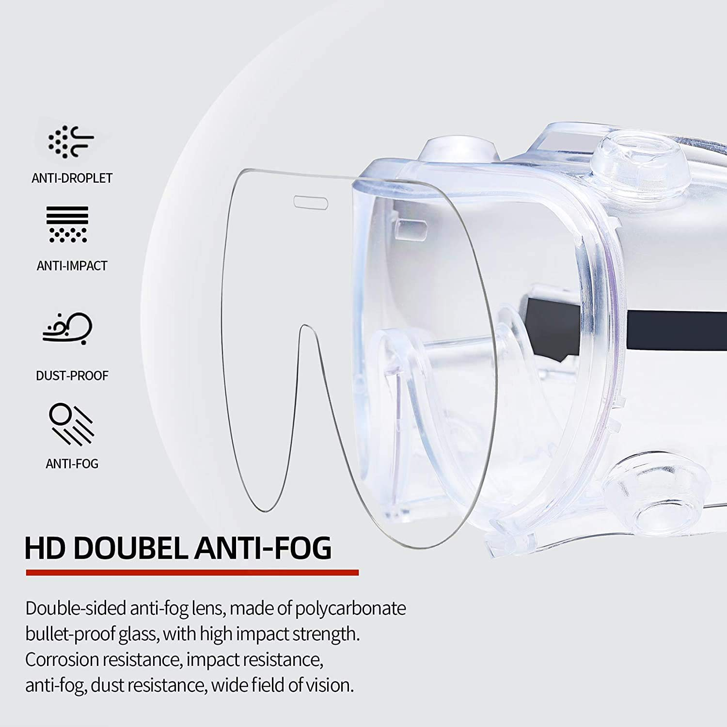 Ventilation: these safety goggles have 4 white indirect ventilation holes for maximum air flow and good ventilation.