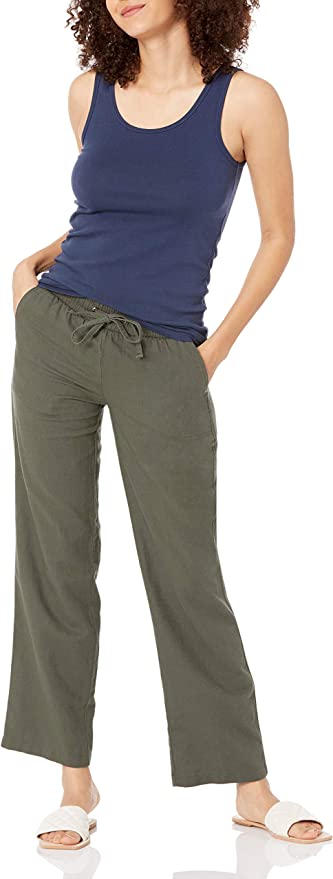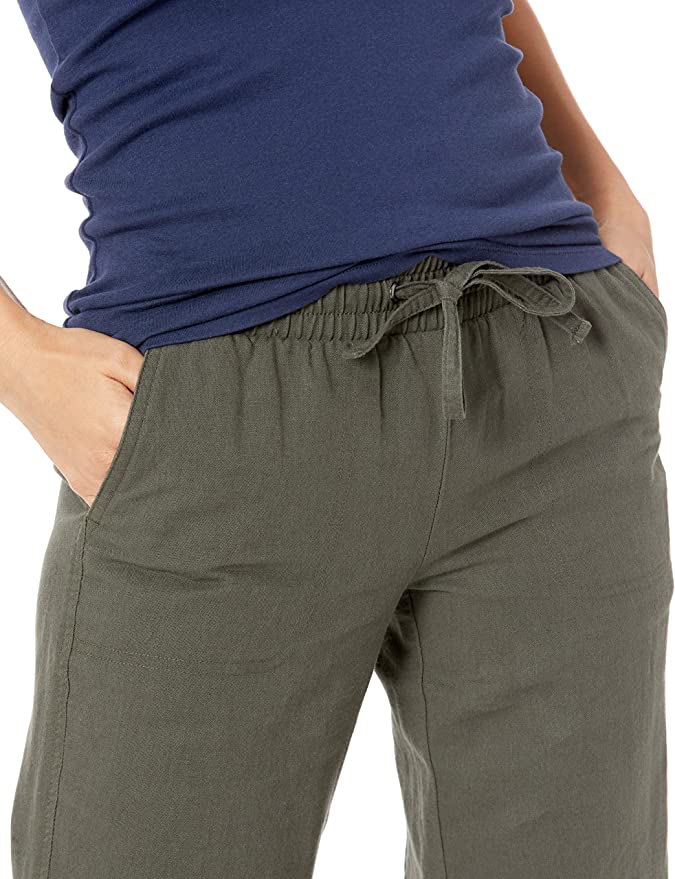 Essentials Women's Linen Blend Drawstring Wide Leg Pant (Available in Plus Size)