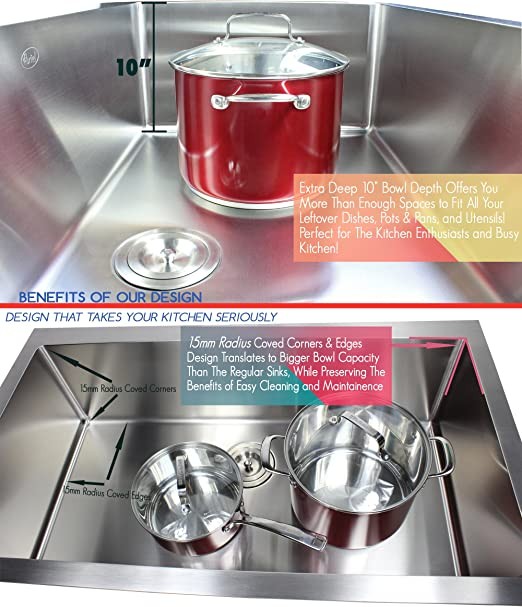 [Quiet Sink] Each sink is manufactured with an excellent sound-deadening system that absorbs and reduces the noise made by garbage disposal and running water.