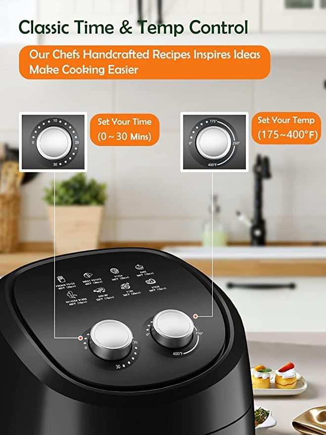 CLASSIC TIME AND TEMP CONTROL: Classic Design Toaster Oven Air Fryer Easy to Use, Wide Temperature Ranges from 175 to 400°F with 30 Mins Timer, Perfect for Beginners, Includes Delicious and Healthy Air Fryer Recipes Helps Everyone to be a Professional Chef.