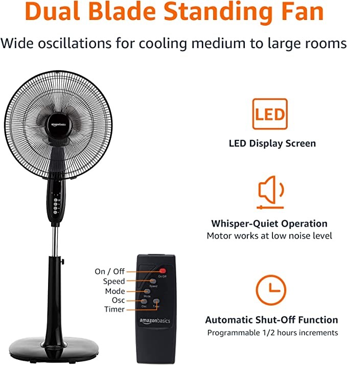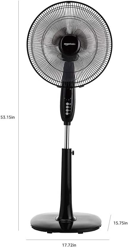 Amazon Basics Oscillating Dual Blade Standing Pedestal Fan with Remote - 16-Inch, Black