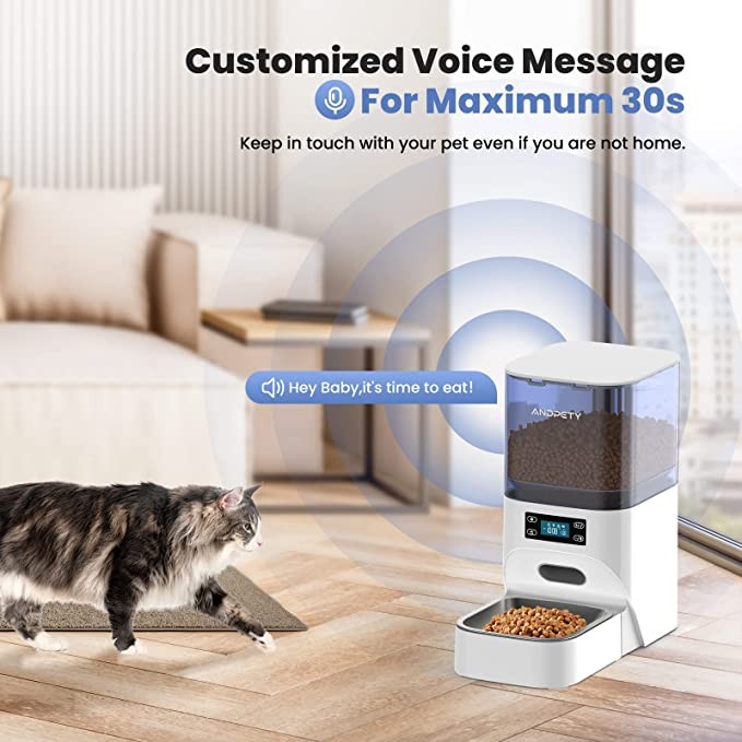 ?【30s Customized Voice Call】 Compared with other pet feeders, Andpet automatic cat feeder allows you to record a long time voice message up to 30s for the meal. So even though you are sleeping, working overtime, traveling or being on business trip, your voice can company your pet friends and makes them feel safe and regular.