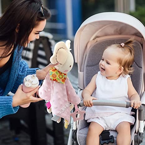 Eases Senses & Emotions - Tired of your baby crying? This adorable baby keepsake rattle personalized security blanket calms and quiets baby and develops your child's personality with its amazing soft plush quality and cute appearance. It can also be used in strollers or car travel.