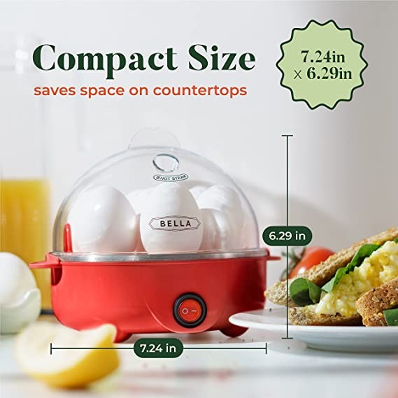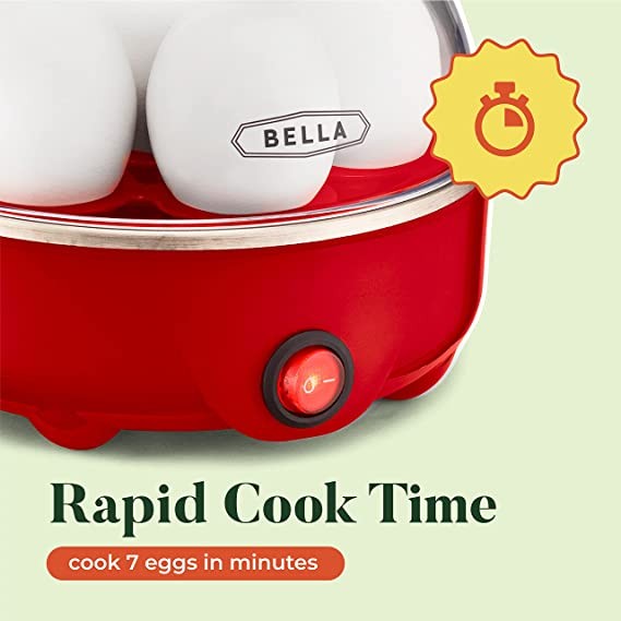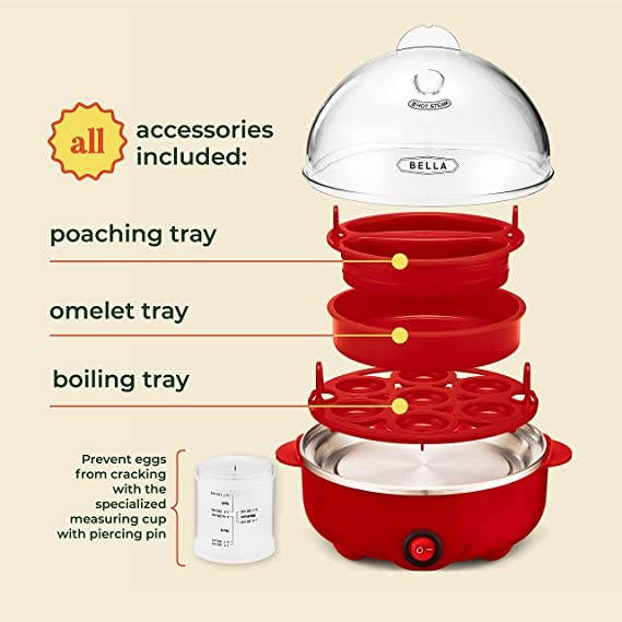 BELLA 17286 Cooker, Rapid Boiler, Boiler Makes Up to 7 Large Egg Boilers, Includes Boiling and Omelette Tray, Single Stack, Red