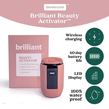 Brandless Brilliant Beauty Activator - Facial Cleansing Exfoliation Brush - Anti Aging Waterproof Scrubber Massager and Deep Cleaning to Firm, Lift, and Tone Skin