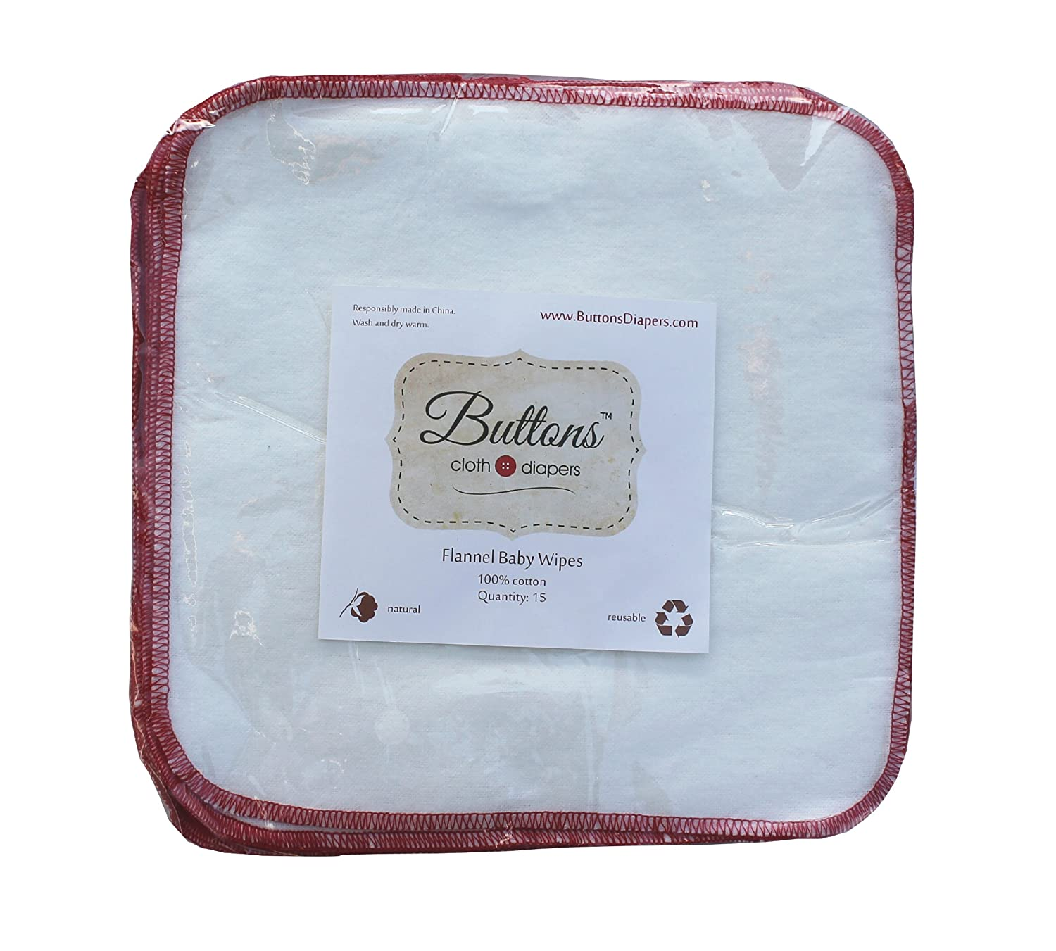 Buttons 100% unbleached cotton flannel baby wipes.