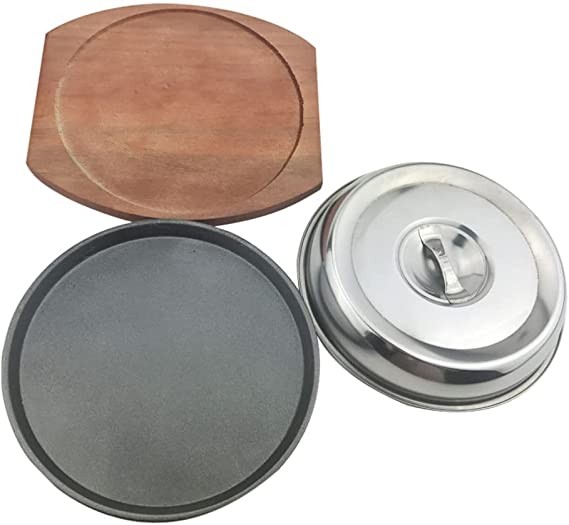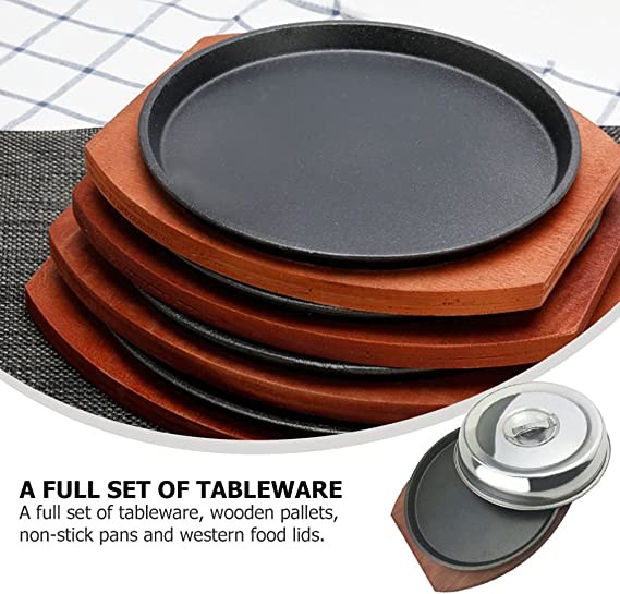 Cast Iron Fajita Skillet Set: You will receive a Fajita frying pan, a wooden base and a lid.