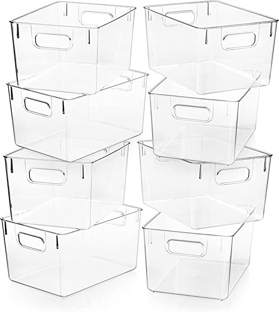PORTABLE & STACKABLE - Built-in easy-grip side handles for easy transport from one place to another. These plastic storage bins are perfect for pantry storage, storage, or kitchen organization. These clear storage bins are perfect anywhere in your home.