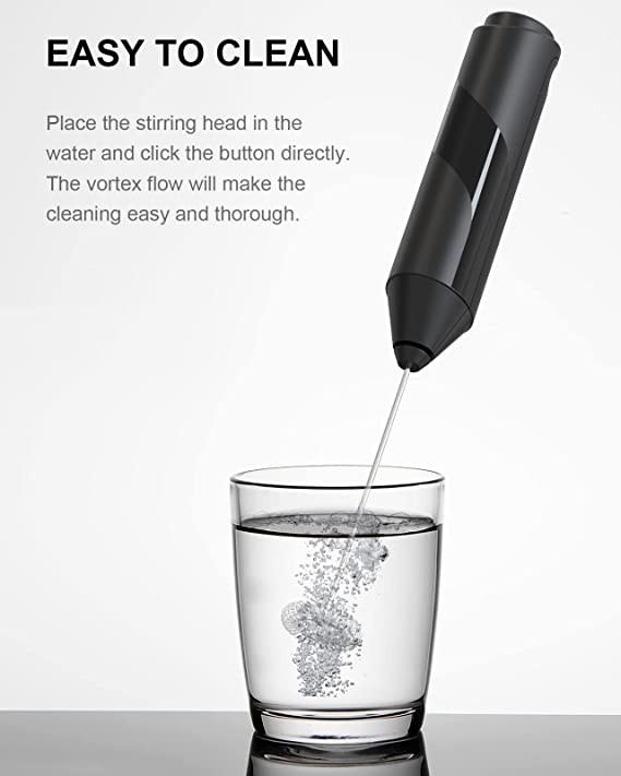 [Easy to Use]: Simple one-touch button with a low noise level, just put it into a container with liquid food up to approx 1/3 to froth, and it will stop work upon you release the button. The drink mixer can be used for more than 1000 times.