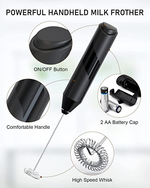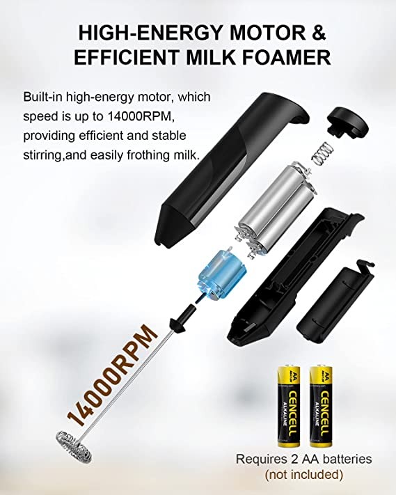 [Convenient Battery Operated]: The frother is battery operated by 2 AA batteries (not included), just need to change the battery directly upon frother is out of power, so missing cords or finding sockets will not happen.