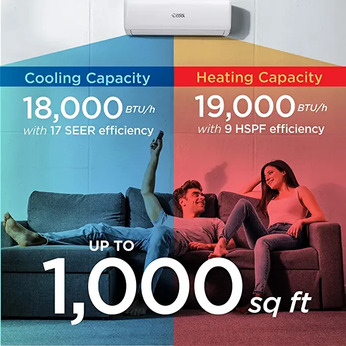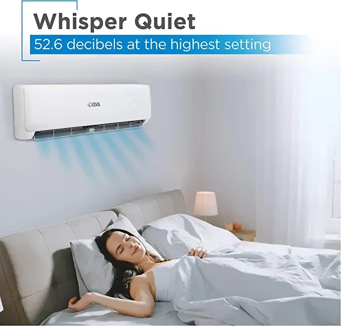 Quiet and powerful: our 18,000 btu air conditioners for cooling, 17 seer and 19,000 bte for heating, as well as 9 room HSPF air conditioners for separate rooms, are the ideal solution for controlling air temperature. This mini alternating current/heating system provides cool and comfort in summer and heat in winter. The ifeel function allows you to set the room temperature according to the location of the remote control, the temperature ranging from 60 to 90 degrees Fahrenheit for four seasons, and the silence is 45/52.6 decibel.