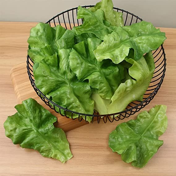 Realistic Appearance: Lifelike fake lettuce leaves, realistic appearance and durable. Fill the house with natural colors. Has a glossy finish and color.