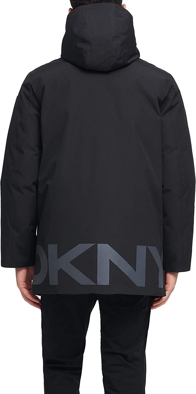 Sticker with dkny logo on the left sleeve and large dkny screen print on the back.