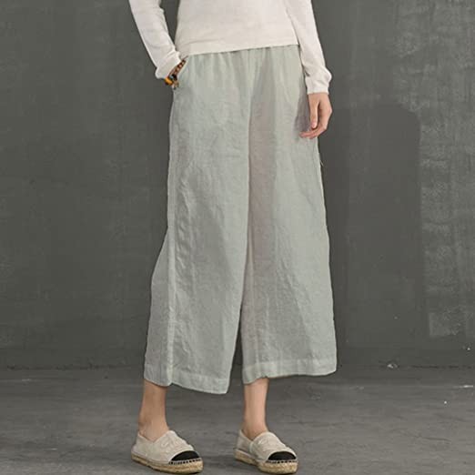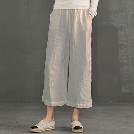 Thanks to the clamp and elastic waist, it is very easy to wear and remove. Free style, daily size plus makes it the most suitable. Solid colors can be easily combined with t-shirts or shirts. Cotton shortened wide straight trousers with pockets for women, ideal for spring and summer.