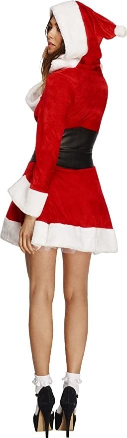 内容:1 件 Smiffy's 成人女式 Fever 连帽圣诞老人服装:连衣裙、附加衬裙、兜帽和腰带,颜色:红色