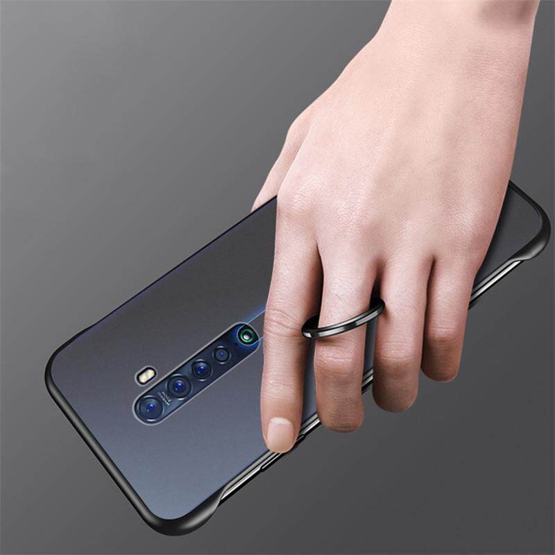 For OPPO Reno 2 Case, Luxury Ultra Thin Frameless Matte Hard Plastic Phone Case with Non-Slip Rope Pull Ring Shock Absorption TPU Bumper Casing Back Cover for OPPO Reno2 Best Quality In Stock