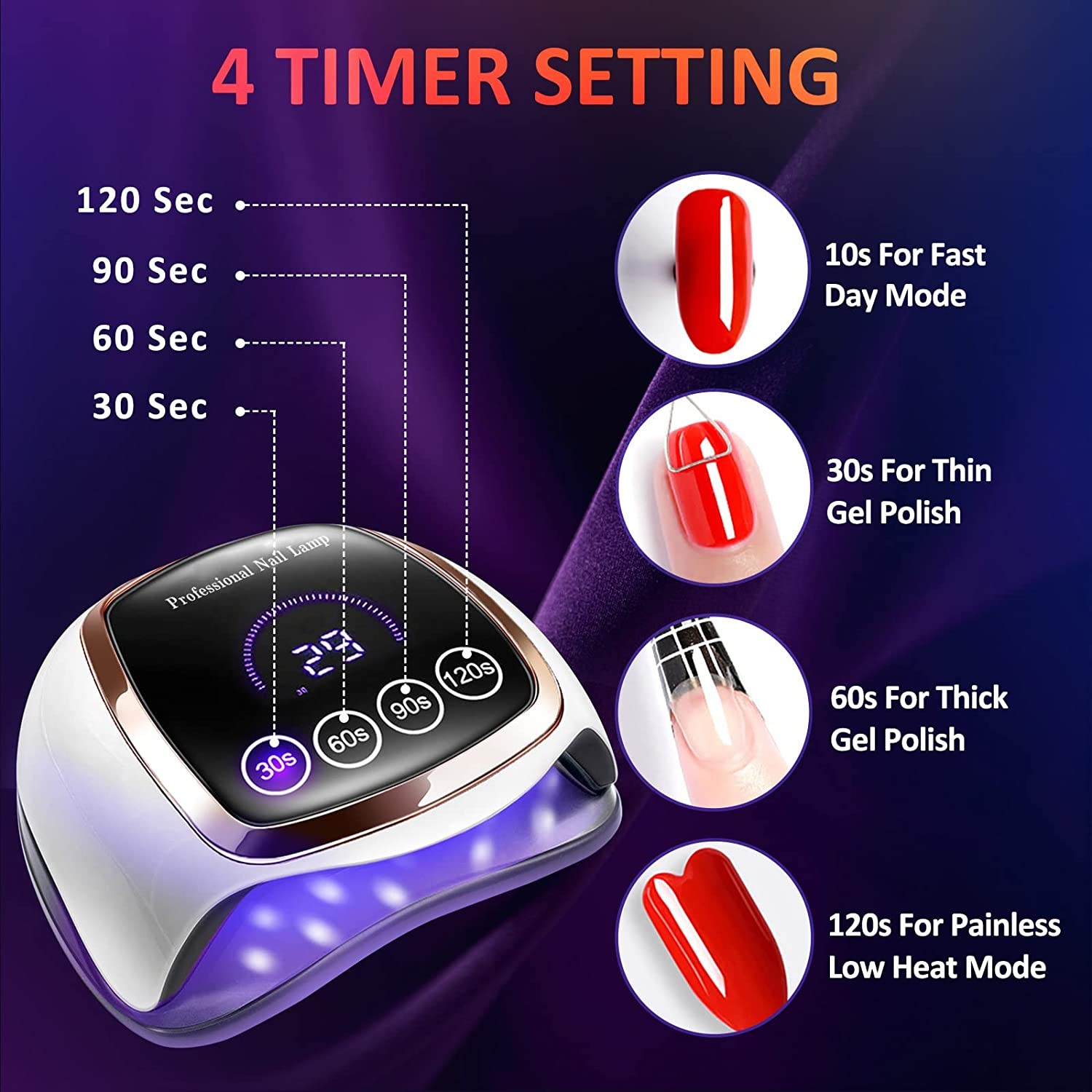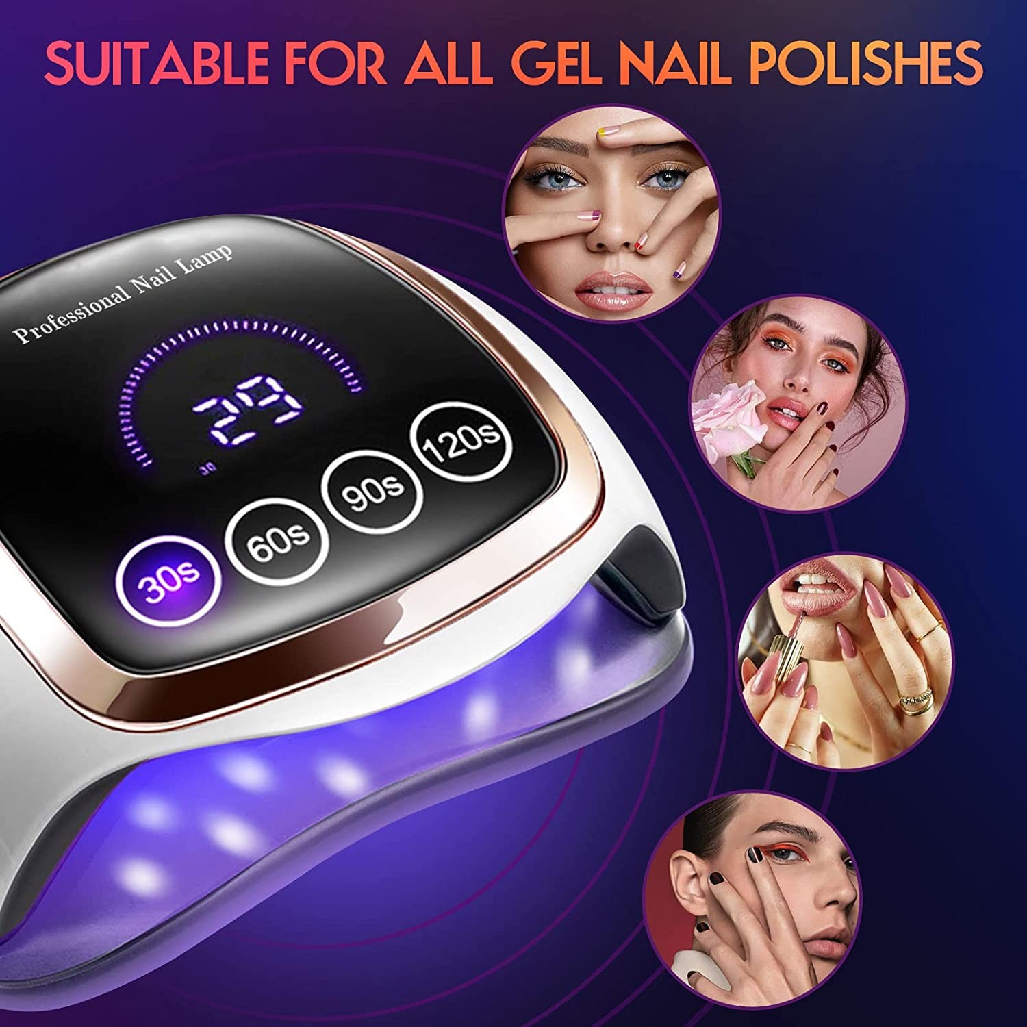 [LCD touch screen, easy to use in one touch] inner liner is equipped with uv and led balls, which makes this uv uv led lamp ideal not only for curing conventional nail varnish, but also for curing most nail varnish sets with uv light. Regardless of brand or type. The motion sensor provides fully automatic contactless polymerization without pressing any keys.