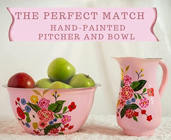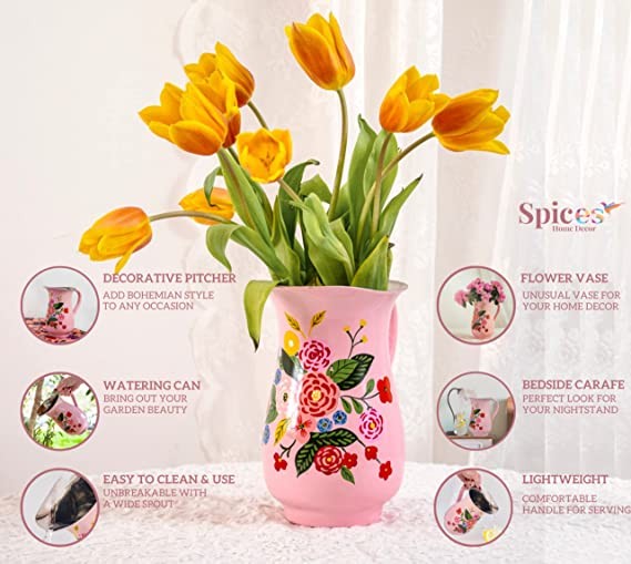 EACH WIDE PITCHER IS UNIQUE - They are individually hand painted in India by our dedicated Kashmiri artisans. You can use it as a bedside night carafe or as a beautiful flower vase and even a watering can.